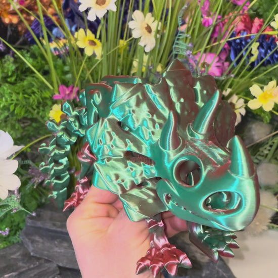 Triceratops (groß, ca. 13,5 cm) Flexi-Skelett, 3D-gedrucktes bewegliches Skelett Dino aus Silk-PLA/PLA, Fidget Figur, viele Farbvariationen zur Auswahl